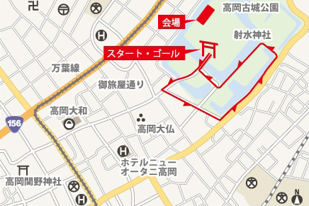 ・コースは高岡古城公園内園路と周辺の行動を規制して実施します。