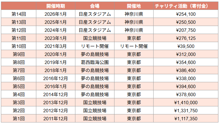 ※第1回~第3回開催時は、参加費に加え協賛金の一部を、震災復興チャリティに充当いたしました